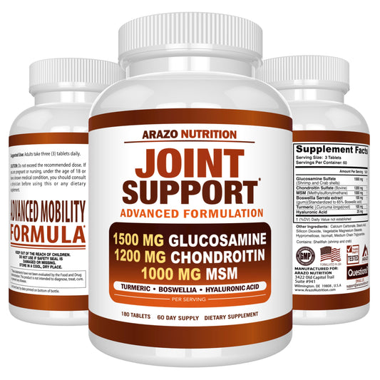 Arazo Nutrition Glucosamine Chondroitin Turmeric Msm Boswellia - Joint Support Supplement for Relief 180 Tablets for Bones, Back, Knees, Hands (180 Tablets)