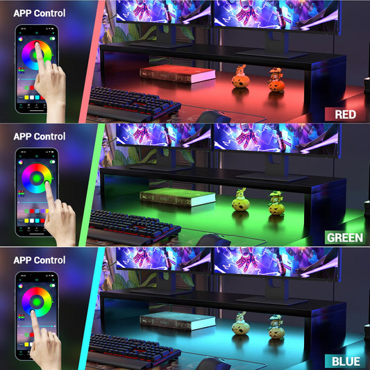 armocity Computer Desk with LED Lights, 48 Inch Reversible Large Desk with Power Outlet and USB, 48'' Gaming PC Table with Moveable Monitor Stand for Home Office, Workstation, Black