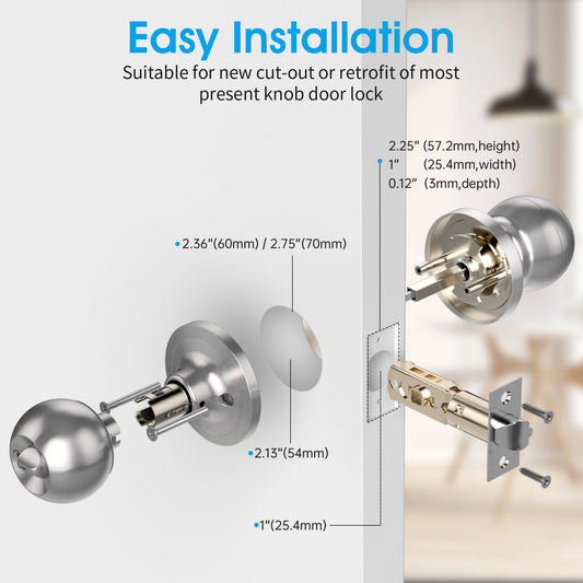 AST Fingerprint Door Knob with Autolock, Passage and Privacy Functions, Rechargeable Keyless Smart Door Knob Lock, Digital Biometric Door Knob with APP (Brushed Stainless Steel)