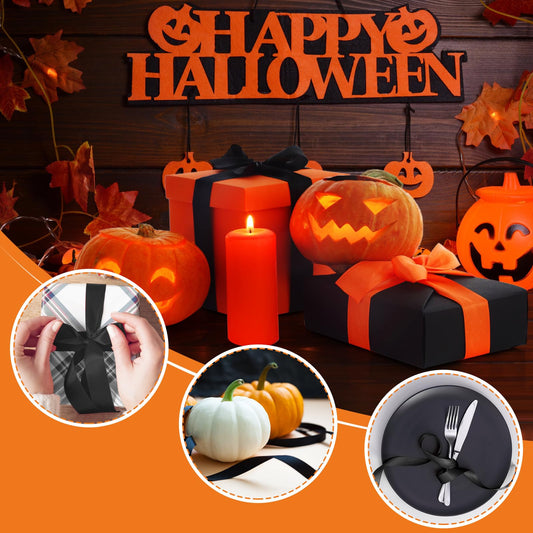 ASTARON Satin Ribbon for Halloween Crafts - 1 Inch, Purple Black Orange Solid Color Fabric Ribbon for Gift Wrapping, Bouquets, DIY Hair Bows and Decorations