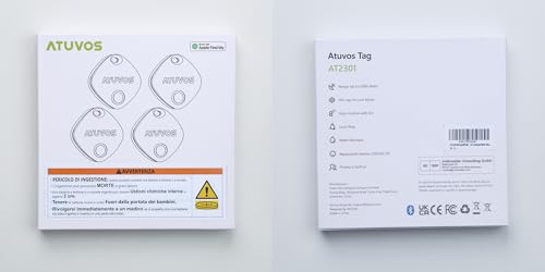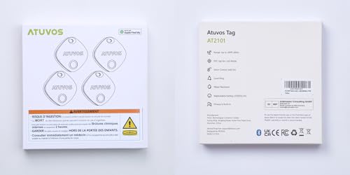 ATUVOS Air Tracker Tags-4 Pack, Bluetooth Luggage Tracker Works with Apple Find My APP (iOS Only, Not for Android), Keys Finder and Item Locator for Luggage, Backpack, Suitcases, Replaceable Battery