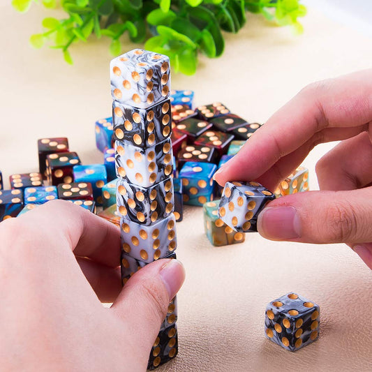 AUSTOR 100 Pcs 6 Sided Dice Set 10 Two Tone Colors Dice with Gold Pips Square Corner Dice(Free Pouch)
