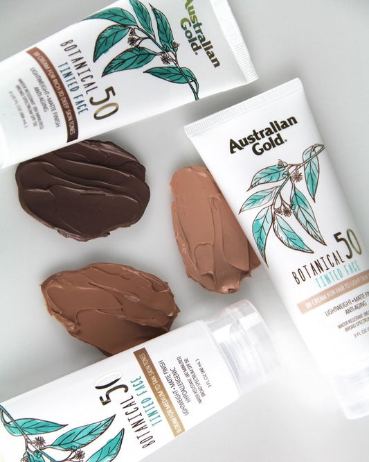 Australian Gold Botanical SPF 50 Tinted Mineral Sunscreen for Face, Non-Chemical BB Cream, Water-Resistant, Matte Finish, For Sensitive Facial Skin, Medium to Tan Skin Tones, 3 FL Oz