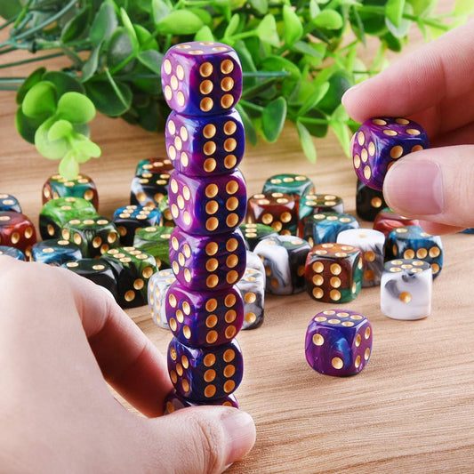 AUSTOR 50 Pieces 6 Sided Game Dice Set 5 Two Tone Colors Dice with Gold Pips Round Corner Dice for Playing Games Like Tenzi, Farkle, Yahtzee, Bunco or Teaching Math