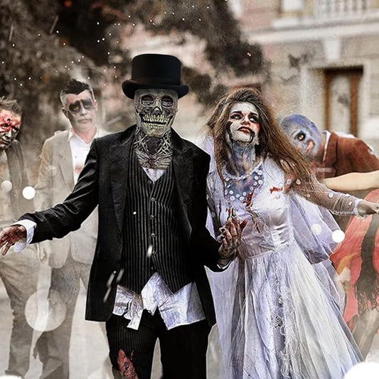 AUSTUFF Halloween Skull Mask,Scary Full Head Horror Mask with Movable Jaw, Scary Realistic Latex Helmet Cosplay Party Props (a mask and a hat)