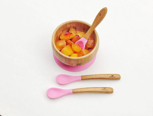 Avanchy Bamboo & Silicone Infant Training Spoons, BPA Free - Soft Tip, Easy on Gums, First Stage Feeding Utensils for Baby-Led Weaning, Self-Feeding, Assorted w/Blue