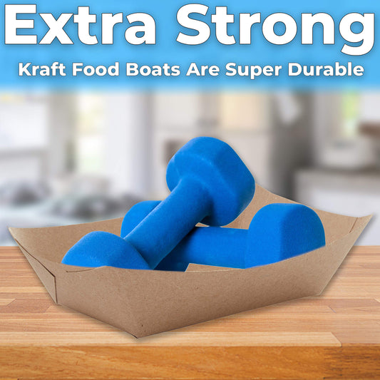 Avant Grub Eco Friendly USA-Made 3lb Food Holder Trays, 50-Pack. Compostable Kraft Paper Dishware Plates for Diners or Concession Stands. Sturdy Disposable 3lb Party Snack Boat. Ideal for Events!