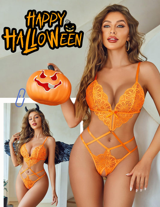 Avidlove Women Teddy Lingerie Lace Bodysuit Cross Straps One Piece Bodysuit Halloween Outfit