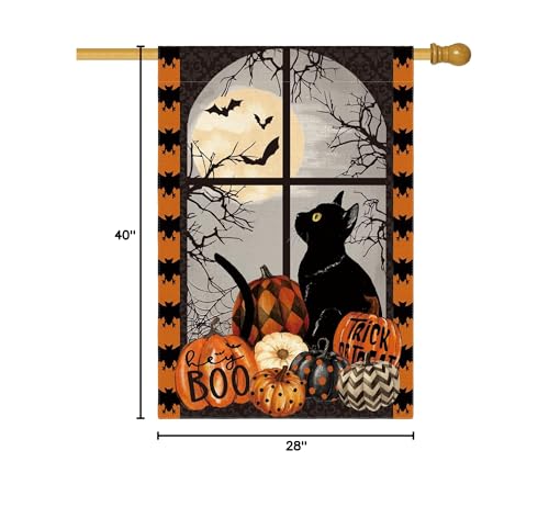 AVOIN colorlife Halloween Pumpkin Trick or Treat Boo House Flag 28 x 40 Inch Double Sided, Black Cat Bat Moon Holiday Yard Outdoor Decorative Flag