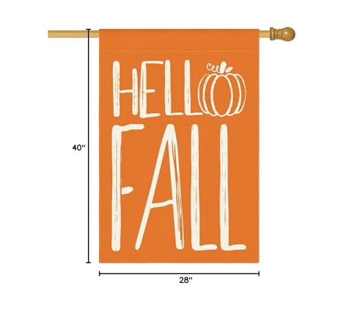 AVOIN colorlife Hello Fall Pumpkin House Flag 28x40 Inch Double Sided Outside, Autumn Seasonal Rustic Yard Outdoor Decorative Flag