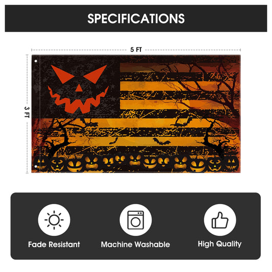 AVOIN colorlife Stripes Halloween Flag 3x5 FT Double Sided, Jack O Lantern Large House Flag Party Yard Outdoor Decoration