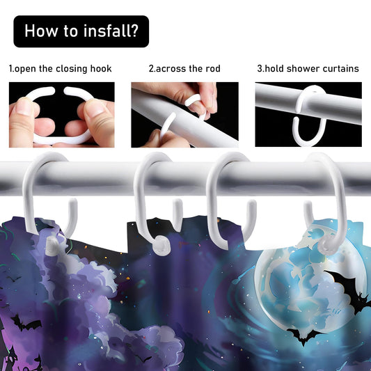 AZHM Halloween Shower Curtain Sets Haunted House Pumpkin Shower Curtains with 12 Hooks, Bathroom Decor Sets with Curtain and Rugs