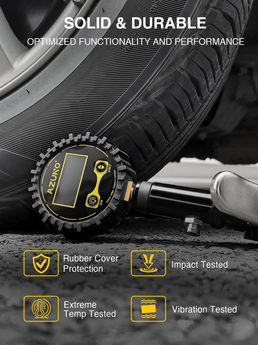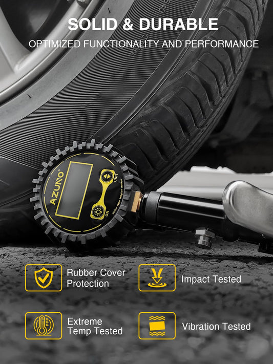 AZUNO Digital Tire Inflator with Pressure Gauge, 200 PSI, Heavy Duty Air Compressor Accessories, w/Rubber Hose Lock on Air Chuck and Quick Connect Coupler