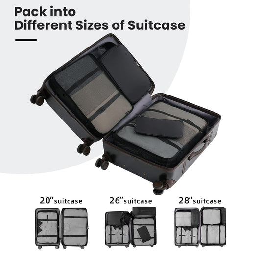 BAGAIL 4 Set/6 Set/8 Set Compression Packing Cubes Travel Accessories Expandable Packing Organizers (Half Mesh, 6-Black)