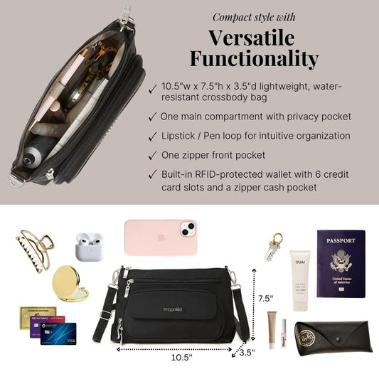 Baggallini Womens Original RFID Everyday Crossbody Bag