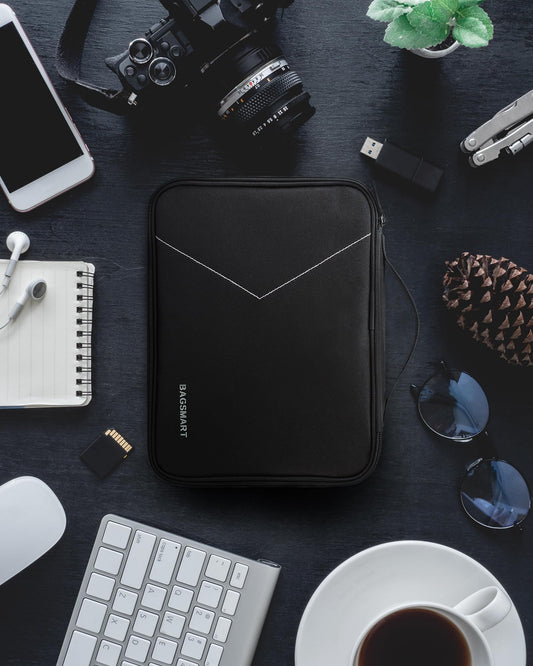 BAGSMART Cable Organizer Bag, Travel Electronics Organizer with Adjustable Divider, Tech Bag Carrying Case, Storage Bag Sturdy Tool Case with Handle for Cellphone Cord Electronics Accessories, Black