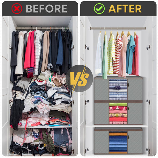 BALEINE 6 Pack Clothes Storage Bags, 24 Gallon Storage Containers with Reinforced Handle, Sturdy Zipper, Closet Organizer for Blanket, Comforter, Pillow, Bedding (Grey, 6 Pack)