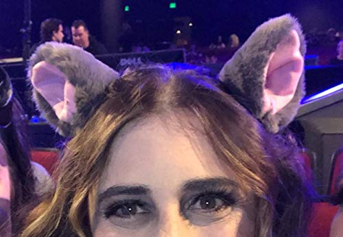 BAOPLAYKIDS Cat Fox Long Fur Ears Hair Clip Headwear Cosplay Halloween Costume(Gray&Pink)
