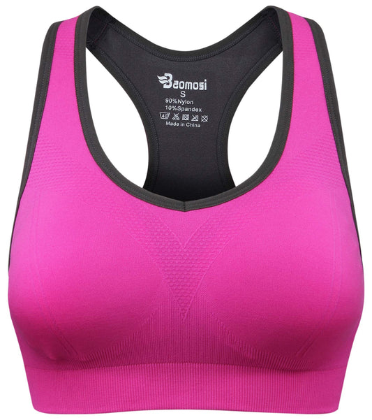 BAOMOSI Women's Seamless Racerback Sports Bra High Impact Support Yoga Gym Workout Fitness Rose Red L