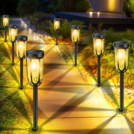 Barleit Solar Pathway Lights 8 Pack, Solar Lights Outdoor Waterproof IP65, Bright Auto On/Off Driveway Patio Light, Solar Garden Lights Landscape Lighting for Walkway Lawn Yard
