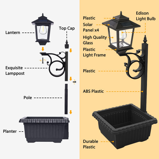 2 in 1 Outdoor Flower Pots for Real or Fake Flowers, Solar Lamp Post Lights - Wall Mount or Freestanding, Waterproof Decorative Lamp for Lawn, Patio, Front/Back Door