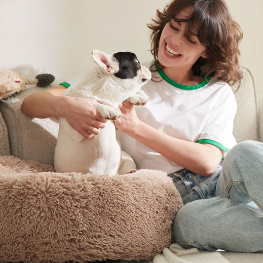 Bedsure Cute Dog Bed for Small Medium Dogs - Washable Furry Puppy Beds, Rectangle Orthopedic Corduroy Fleece Pet Beds with Removable Zipper Cover, 25x21x7inches, Cream