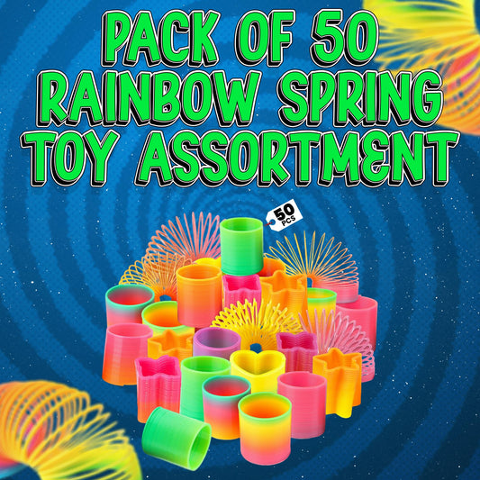 Bedwina Rainbow Spring Toy Assortment - (Pack of 50) Mini Plastic Coil Spring Toy | Bright Colors and Shapes, Goody Bag Filler, Party Prizes and Stocking Stuffers for Kids