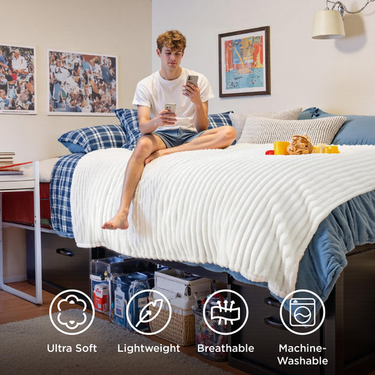 Bedsure GentleSoft White Throw Blanket for Couch - Cozy Blanket for Women, Cute Fleece Throws for Girls Sofa Couch Cover, Birthday Gifts for Women, Room Fall Halloween Decor, Off White, 50x60 Inches