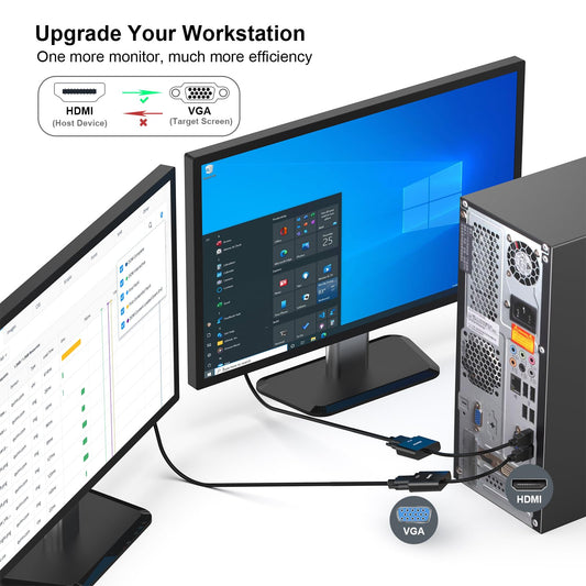 BENFEI HDMI to VGA, Uni-Directional HDMI Computer to VGA Monitor Adapter (Female to Male) with 3.5mm Audio Jack Compatible with TV Stick, Computer, Desktop, Laptop, PC, Monitor, Projector, Roku, Xbox