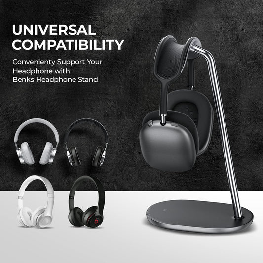 BENKS Headphone Stand for AirPods Max, Beats, Bose, Sony, Senheiser - Desktop Headset Holder, Gaming Accessories, Desk Earphone Stand (Black)