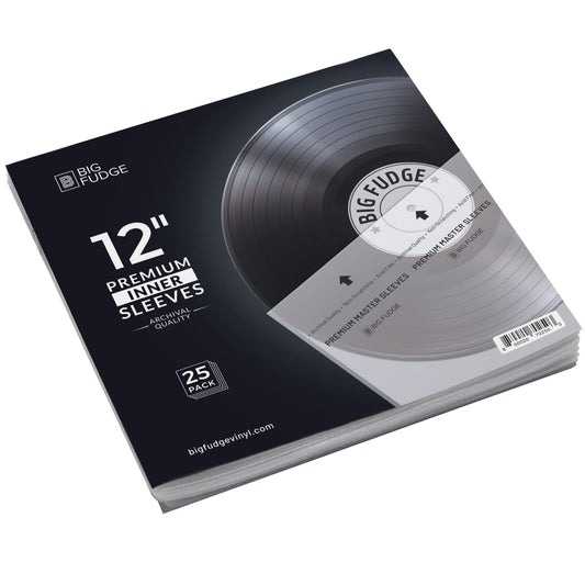Big Fudge 25x Premium Vinyl Record Inner Sleeves - Clear 3-Ply Album Covers with Anti-Static Rice Paper - Master Vinyl Record Sleeves - Acid Free Protective Cover for 12" Records