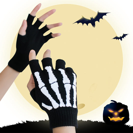 Bienvenu Unisex Stretchy Fingerless Hand Warmer Skeleton Gloves