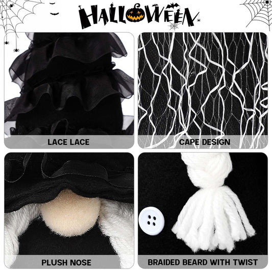 BINSUNS Halloween Plush Gnomes Decoration, 2 Pack Halloween Dangle Leg Gnomes Doll Elf Dwarf - Black Witch Cloak Hat Stuffed gnomesfor Halloween Home Decor Table Decorations Gifts Household Ornaments