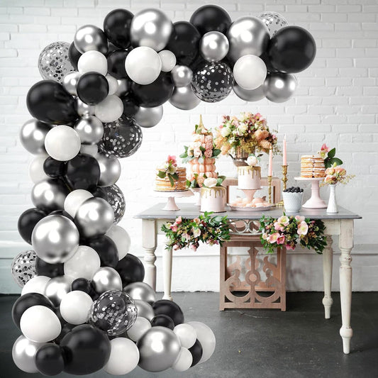 Black and Silver Balloons, 60 Packs 12 Inch Chrome Metallic Silver Balloons and Confetti Balloons, Black White Silver Balloon for Wedding Engagement Birthday Halloween Decorations