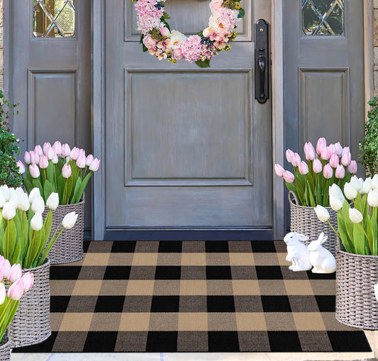 Black and Tan Outdoor Doormat 24"x35",Buffalo Checkered Farmhouse Outdoor Rug Hand-Woven Indoor or Outdoor Front Porch Mat for Layered Door Mats,Entryway,Patio,Bedroom,Bathroom