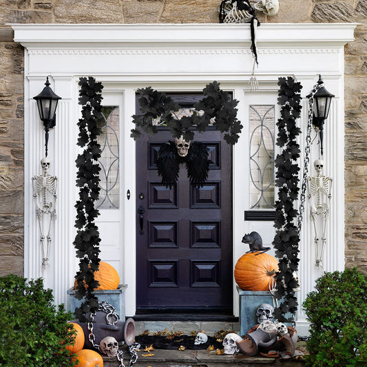 Black Maple Leaf Garland, 2PCS Halloween Artificial Hanging Fall Leave Vines, Fall Floral Garlands Thanksgiving Decor for Home Wedding Party (11.8FT)