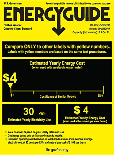 BLACK+DECKER 0.9 Cu. Ft. Portable Washer, 6.6 lb. Capacity Washing Machine for Homes & Apartments, 5 Wash Cycles, Quick Connect Sink Adapter and Drain Hose Included, Transparent Lid, BPWM09W, White