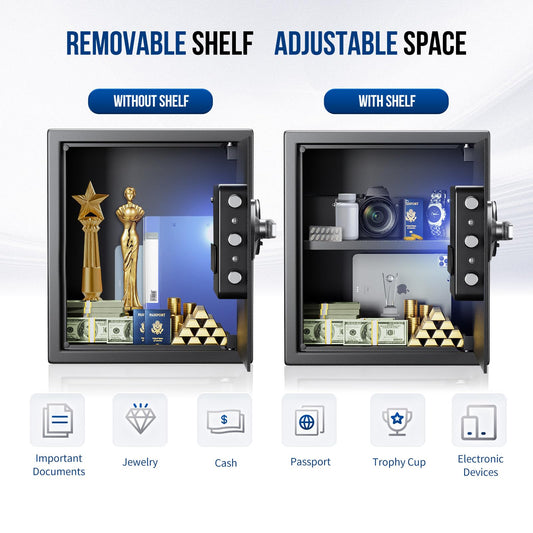 BlackSmith Biometric Safe Box 1.5 Cub Home Security Safe Fingerprint Recognition Money Safe with Keys Keypad Lock Box Secure Jewelry Valuables with Dual Alarm System Fireproof Bag, Black