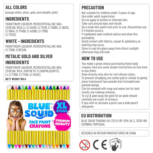 Blue Squid Face Paint Crayons for Kids - 42pcs XL Non-Toxic, Washable Body Paint Crayons - Our Face Painting Kit Makeup Sticks are Easy to Use, Safe for Sensitive Skin and Perfect for a Kids Party