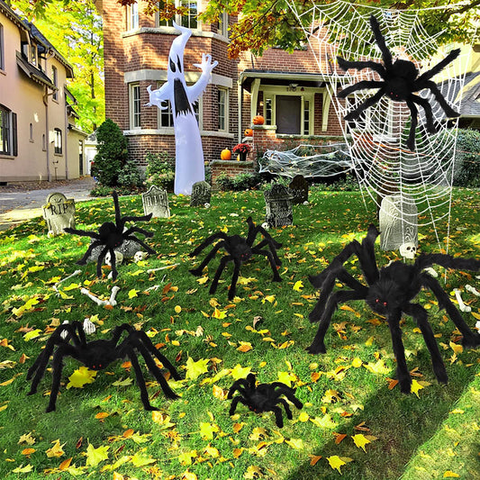 Boogem Halloween Spider Decorations, 6 Pack Giant Spider Outdoor Decorations for Halloween, Scary Hairy Realistic Creepy Large Spider Decorations Sets for Indoor, Home, Party, Yard (Black)