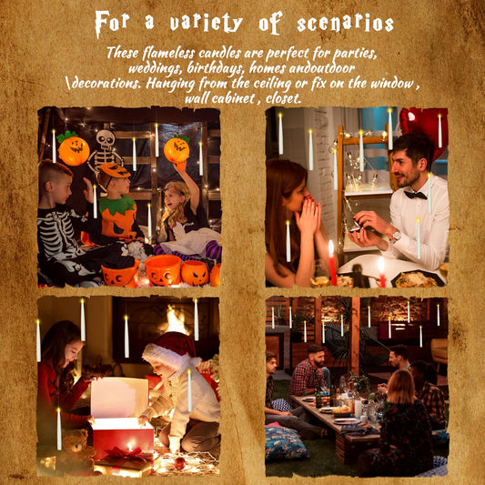 Boribim 20PCS Floating Candles with Wand, Magic Hanging Candles, Flickering Warm Light LED Taper Flameless Candles with Wand Remote, Battery Operated Window Candle for Halloween Decorations Best Gift