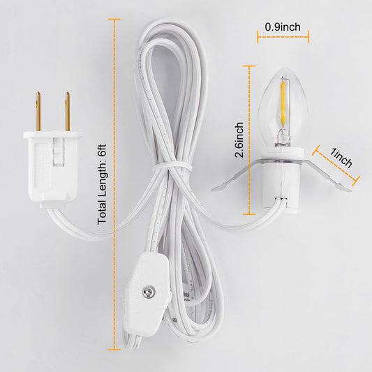 Brightown Accessory Cord with LED Bulb - 6ft Cord with On/Off Switch for Night Lights, Halloween Pumpkin, Blow Mold, Christmas Village House, Holiday Ceramic Trees, Craft Projects, 2 Pack