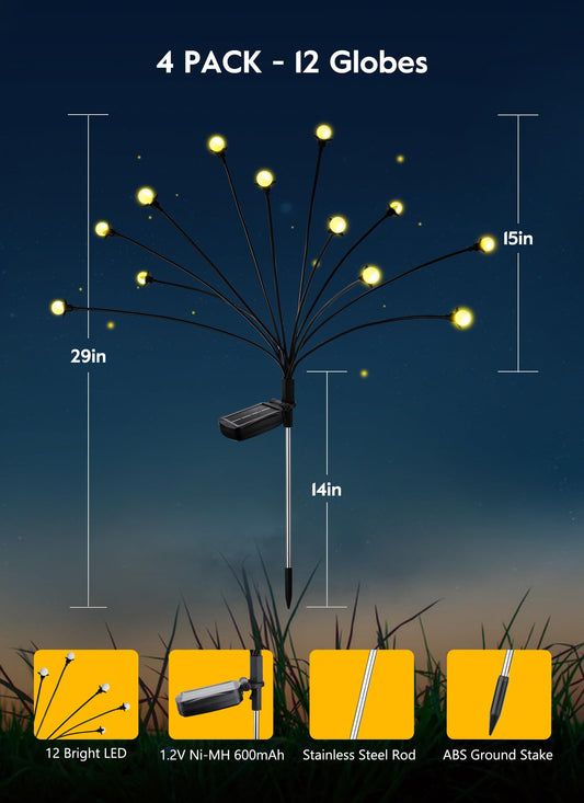 Brightown Solar Garden Lights - 4 Pack 48 LED Firefly Lights with 2 Lighting Mode, Sway by Wind, Waterproof Solar Light for Outdoor Outside Yard, Warm White
