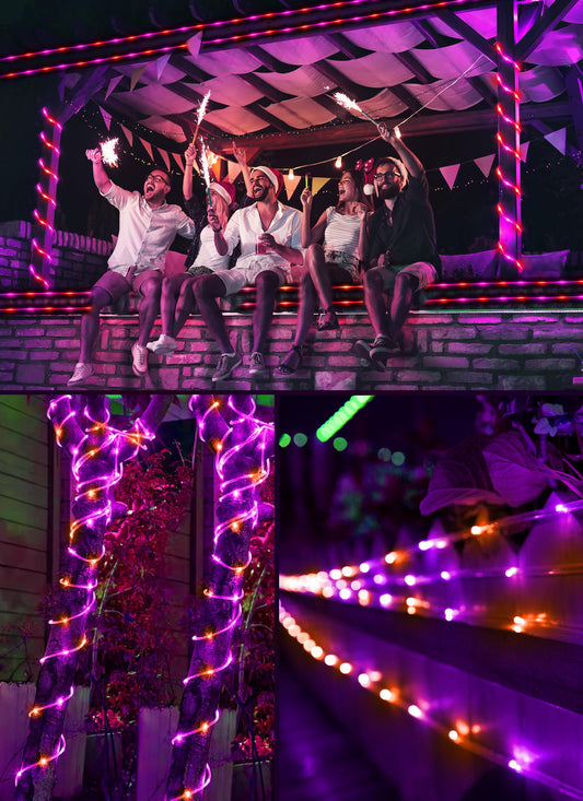 Brightown Solar Halloween Lights Outdoor, 39FT 100 LED String Lights With 8 Modes, Decoration Outdoor, Waterproof Solar String Lights for Outside Tree Yard Party, Orange & Purple