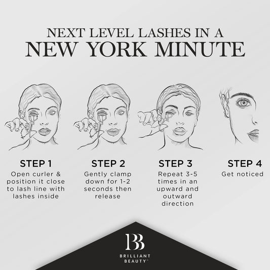 Brilliant Beauty Eyelash Curler with Satin Bag & Refill Pads - Award Winning - No Pinching, Just Dramatically Curled Eyelashes for a Lash Lift in Seconds (Rose Gold)