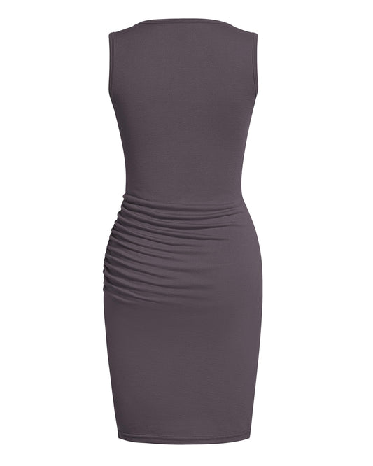BTFBM Women Summer Dresses 2025 Sleeveless Tank Crew Neck Casual Ruched Bodycon Party Club Beach Short Mini Dress(Dark Grey, Small)