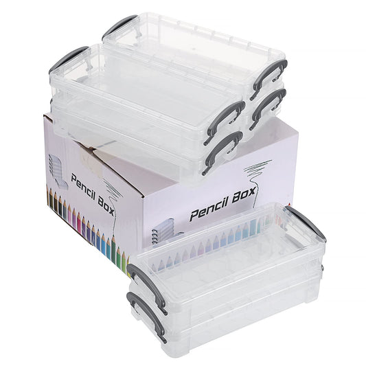 BTSKY Large Capacity Pencil Box, Office Supplies Storage Organizer Box, Brush Painting Pencils Storage Box Watercolor Pen Container Drawing Tools(6 Pack Clear)