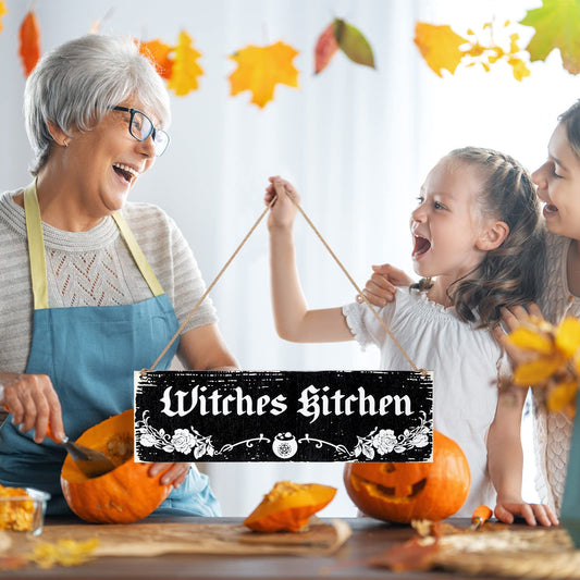 Bucherry Wood Witches Kitchen Decorative Signage - Halloween Goth Decor, Vintage Farmhouse Signs, 13.78 x 4.72 inches or 35 x 12 cm, Black and White, Classic, Indoor and Outdoor Use