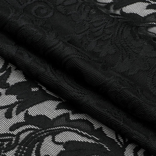 Bujasso Black Sheer Lace Curtains 63 inch Luxury Vintage Floral Sheer Window Curtain Panels for Living Room Bedroom Light Filtering Gothic Halloween Black Drapes Rod Pocket 54" Wx63 Lx2