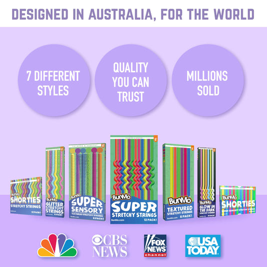 BUNMO Stretchy Strings - Sensory Toys for Toddlers - Stimulating & Addictive Sensory Toys for Kids - Fidget Toy - Hours of Fun for Kids - Non-Mouthable Toy 3+ - Smooth 6 Pack